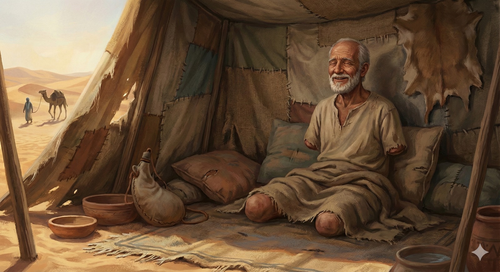 Mendengar itu, sang musafir tertegun. Ia mendekat dan bertanya dengan penuh keheranan, “Wahai hamba Allah, nikmat mana yang engkau syukuri? Engkau buta, lumpuh, dan sebatang kara. Apa yang tersisa darimu untuk disyukuri?”