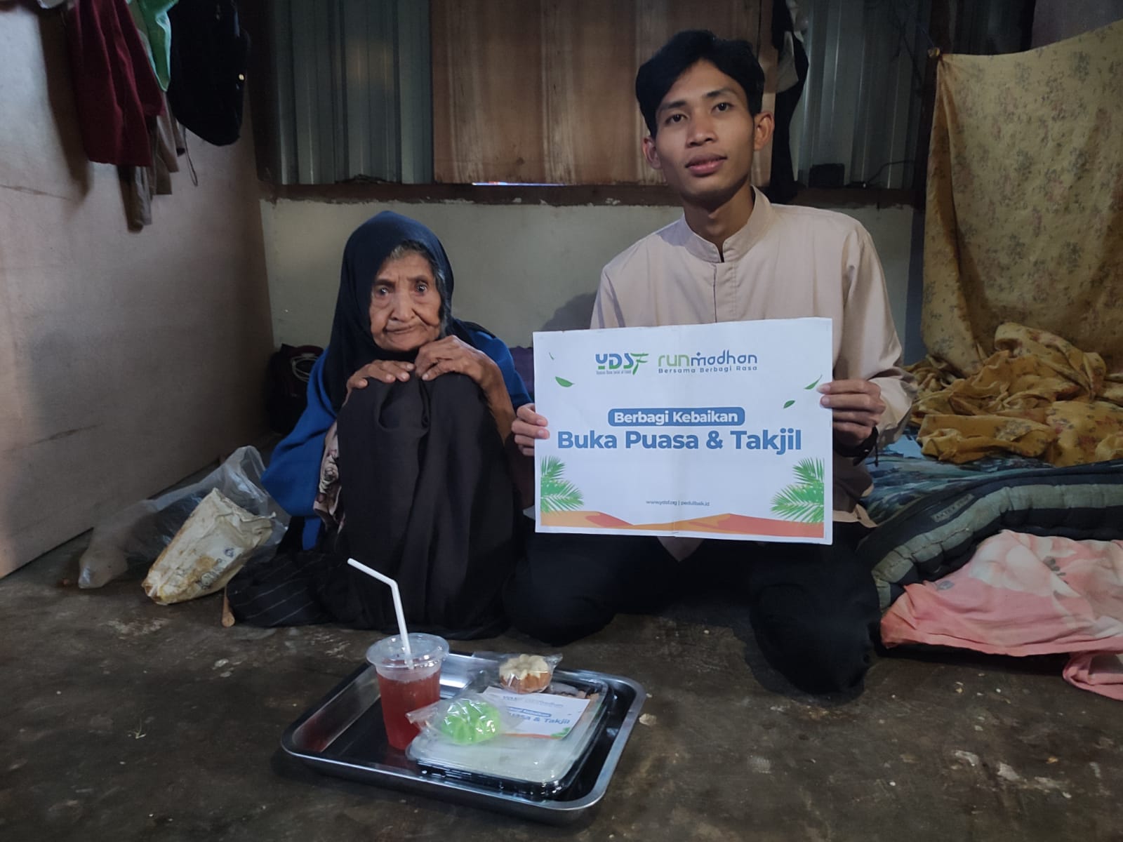 “Terima kasih telah mengantarkan paket buka puasa ke rumah kami. Semoga YDSF selalu diberkahi,” ujar Jariah, lansia yang mendapatkan kebaikan YDSF.